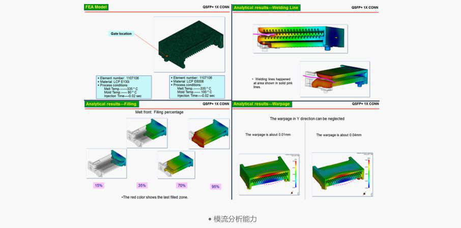 公司具備連接器研發之CAE工程分析能力, 如結構分析,模流分析,信號完整性分析,熱分析等。在產品的研發過程中,即可確定產品的性能,產品的制造性等。從而節約產品研發成本,縮短產品研發周期,提高產品設計質量。