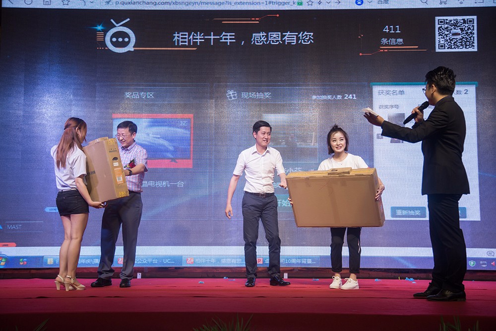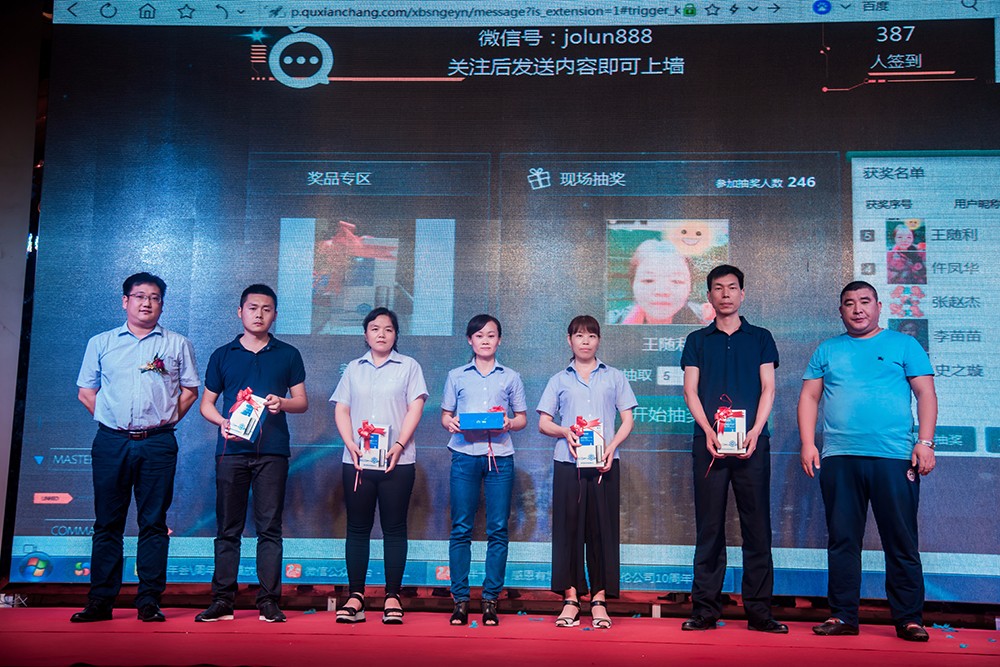 慶典文藝活動十分精彩,現場晚會高潮不斷,公司內部集體舞《玖月奇跡-踩踩踩》散發出朝氣、活力與激情;搖滾嗨歌,不斷的點燃全場的激情;平衡術讓現場觀眾屏息觀察,感受平衡術之神奇。同時現場還有各類小游戲穿插,小禮物與紅包競猜不斷,精彩迭起,一次次把晚會推向高潮。令人興奮不已的抽獎活動更是貫穿始終,公司為答謝各位領導和職工們的辛勤付出準備了非常豐富的獎品,由50個幸運獎自拍桿、5個三等獎養生杯、3個二等獎電熱水壺、2個一等獎電視機,2個特等獎筆記本電腦。最后由公司內部節目組成的大合唱《相親相愛的一家人》,向大家詮釋卓倫人的團結,正如歌詞所唱有福同享、有難同當的一家人夢朝著同一個方向打造,最后所有卓倫人祝卓倫企業越來越好,越來越輝煌。