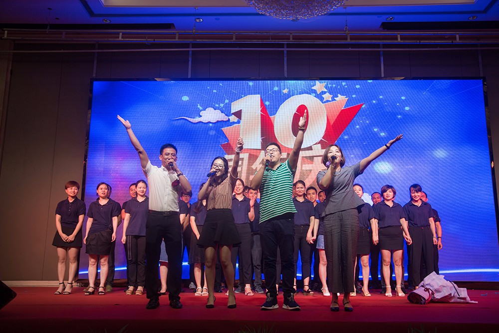 在所有表彰結束后,主持人邀請茅總登臺宣布“卓倫企業十歲了”,在全場的掌聲中,大家高舉酒杯祝賀“卓倫企業成立十周年!”,慶典活動正式開始。